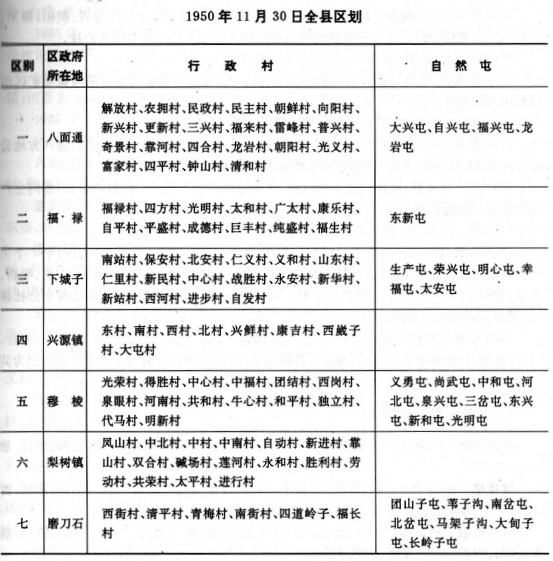 1949年11月,撤销第七区建制,所属行政村划归第六区;撤销第八区建制,所属行政村划为第一区;磨刀石从牡丹江市划归穆棱县,编为第七区。